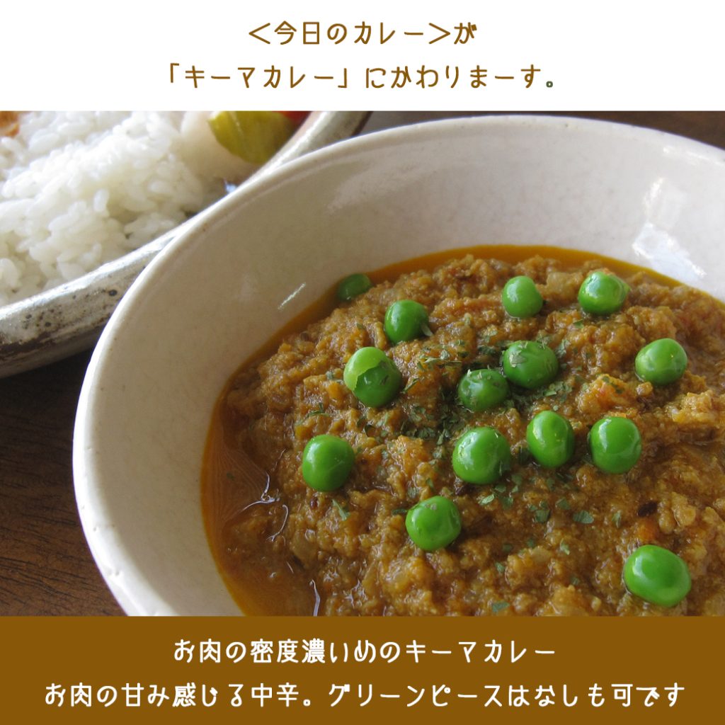 今日のカレーが「キーマカレー」にかわっています。