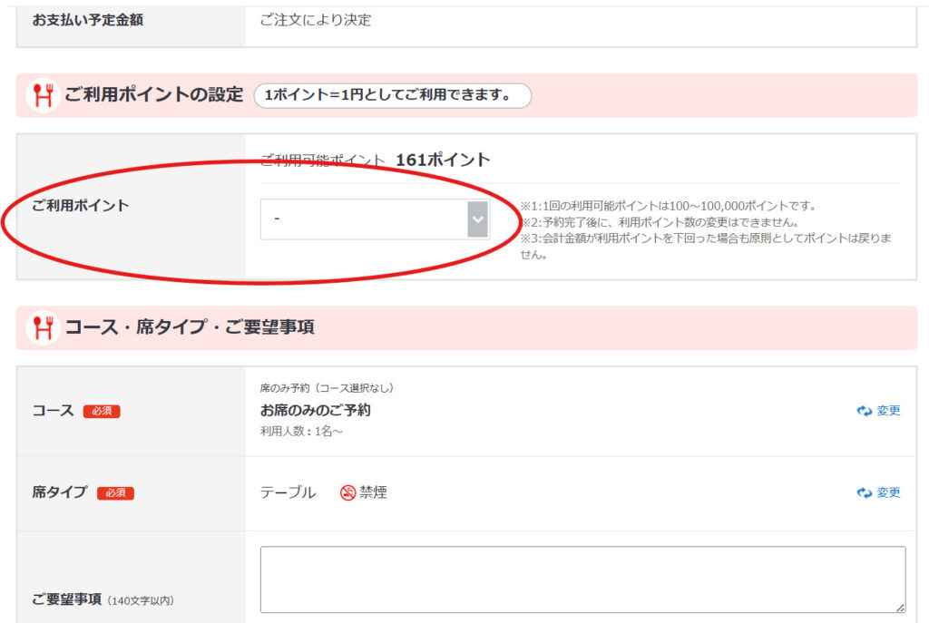 ポイントは、必ずネット予約時に何ポイント使うか入力してくださいね。
